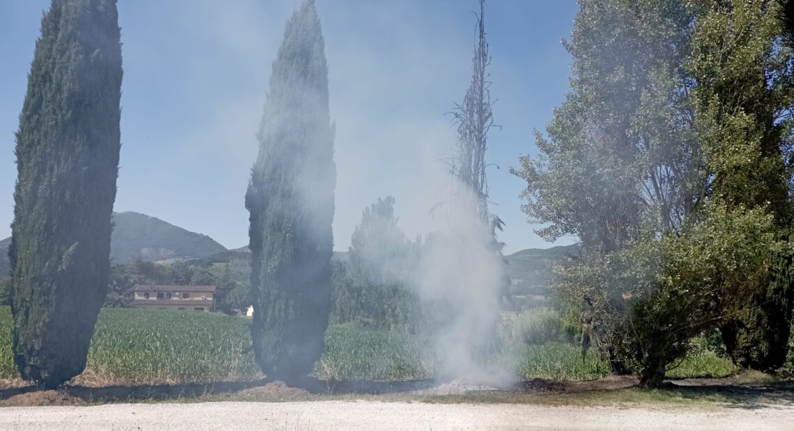 UMBERTIDE – Vigili del fuoco al lavoro nella tarda mattinata di martedì per spegnere l’incendio che ha divorato un cipresso posizionato vicino all’ingresso della parte nuova del cimitero. Stando alle testimonianze degli abitanti della zona, l’albero è stato interessato dal rogo già dalla prima serata di lunedì con le fiamme che sarebbero tornate a farla da padrone nelle prime ore di oggi. Oltre ai caschi rossi sul posto sono intervenuti i carabinieri forestali (che avranno il compito di risalire alle cause del rogo) e la polizia locale. La pianta, ormai completamente carbonizzata, sarà abbattuta per ragioni di sicurezza.