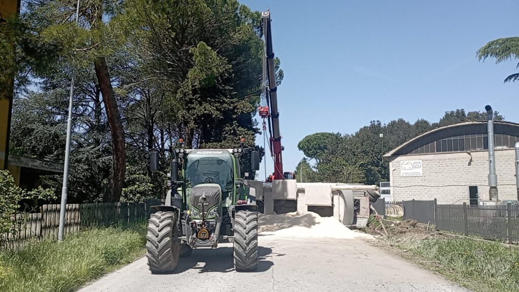 UMBERTIDE – Disagi questa mattina, martedì 22 aprile, lungo la Tiberina 3 bis nel tratto che collega Pierantonio e Sant’Orfeto, che è stato chiuso al traffico per alcune ore a causa di un incidente che ha coinvolto un trattore con rimorchio. Il sinistro è avvenuto intorno alle ore 9 quando all’improvviso il rimorchio si è staccato dal trattore, forse a causa di un guasto meccanico, ribaltandosi e riversando sulla carreggiata l’intero carico di mangime per animali.