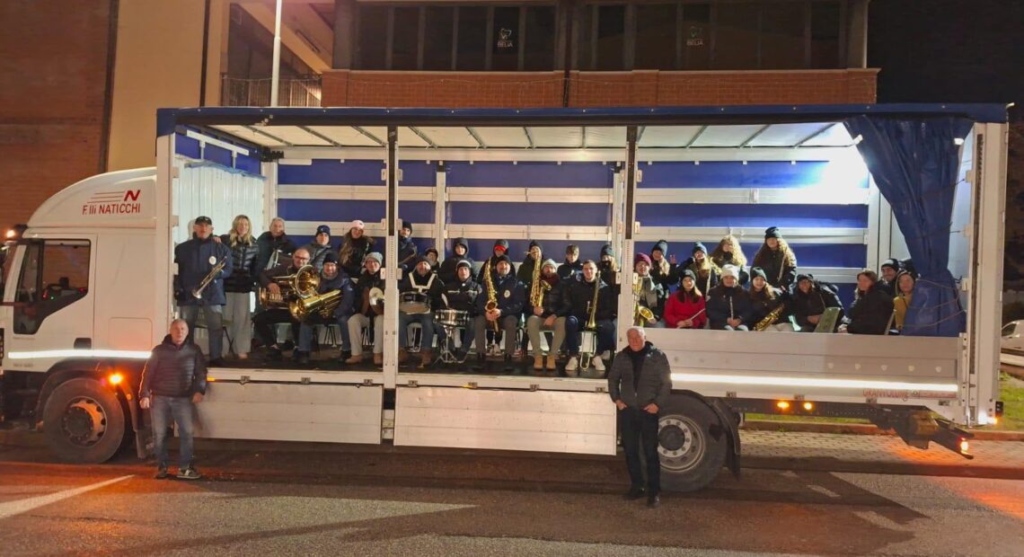 UMBERTIDE – Si è rinnovata anche quest’anno la tradizionale Sveglia di Santa Cecilia. Nella notte tra venerdì 21 e sabato 22 novembre, in occasione della ricorrenza della Santa patrona dei Musicisti, la banda diretta dal Maestro Galliano Cerrini è tornata a dare la sveglia alla città a ritmo di musica. Alle ore 4 in punto, i giovani musicisti della Junior Band insieme ai veterani della banda, sono saliti a bordo di un autocarro telonato, per ripararsi dalle condizioni meteo non proprio favorevoli, ed hanno percorso le principali vie di Umbertide con il loro carico di musica ed allegria travolgente.
