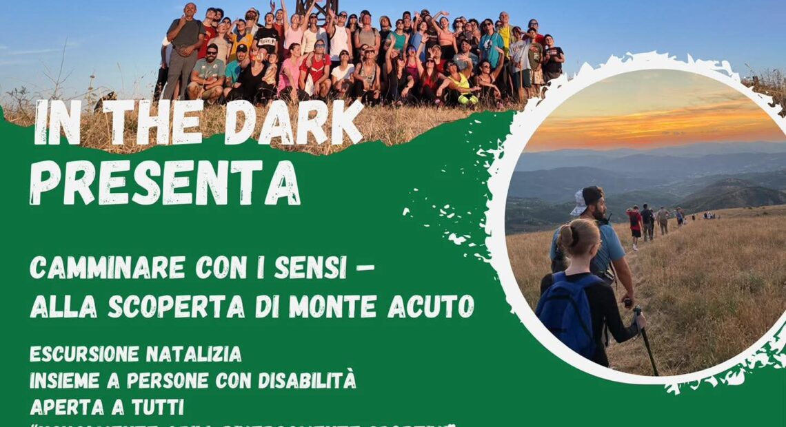 IN THE DARK nasce nel 2021, grazie ad un’idea di Michele Milli e Daniele Caratelli, con lo scopo di diffondere un messaggio tanto semplice quanto importante: la disabilità non può e non deve essere considerata un limite. Ed è per questo che domenica 7 dicembre si terrà un’escursione aperta a tutti, che vedrà anche la partecipazione di persone con disabilità, tra cui non vedenti, accompagnati da educatori professionali. Il ritrovo è previsto per le ore 8.30 al parcheggio di Vivo (Ex Menchetti) per poi raggiungere in auto il punto di partenza dell’escursione. Insieme si percorreranno i sentieri che conducono alla cima di Monte Acuto per poi scambiarsi gli auguri di Natale in vetta. Al ritorno è previsto un aperitivo per tutti a base di prodotti tipici locali presso il Frantoio Bruni. L’evento è promosso con il patrocinio del Comune di Umbertide e in collaborazione con Cooperativa Asad, Pro Loco Umbertide e Cai di Perugia, Centro di consulenza tiflodidattica dell’Istituto Serafico di Assisi.