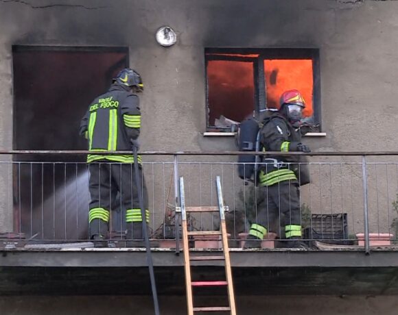 Edificio in fiamme in via Morandi